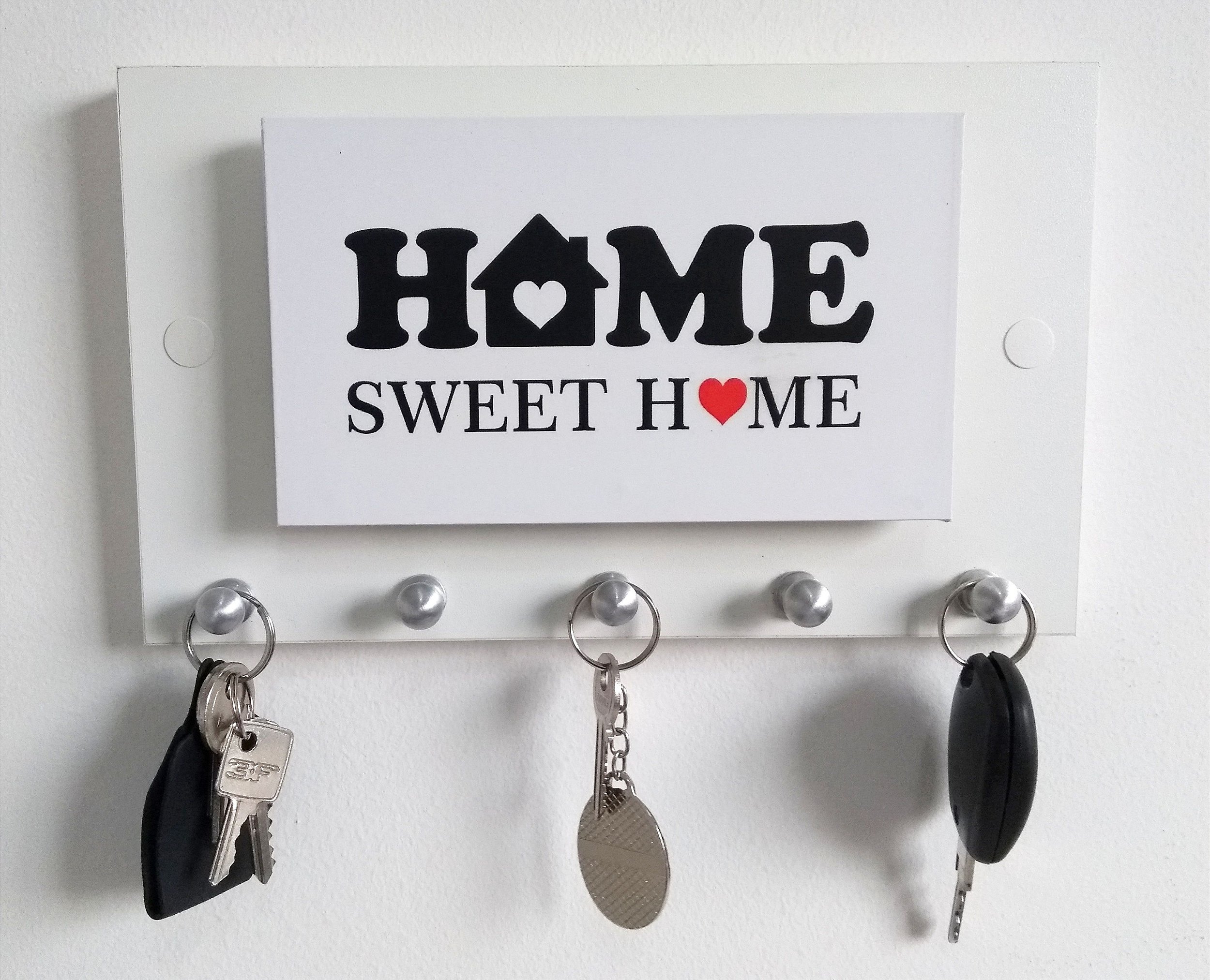 Material: 100% em MDF branco, bordas em PVC branco, texto adesivado e suporte chaves em metal acetinado.