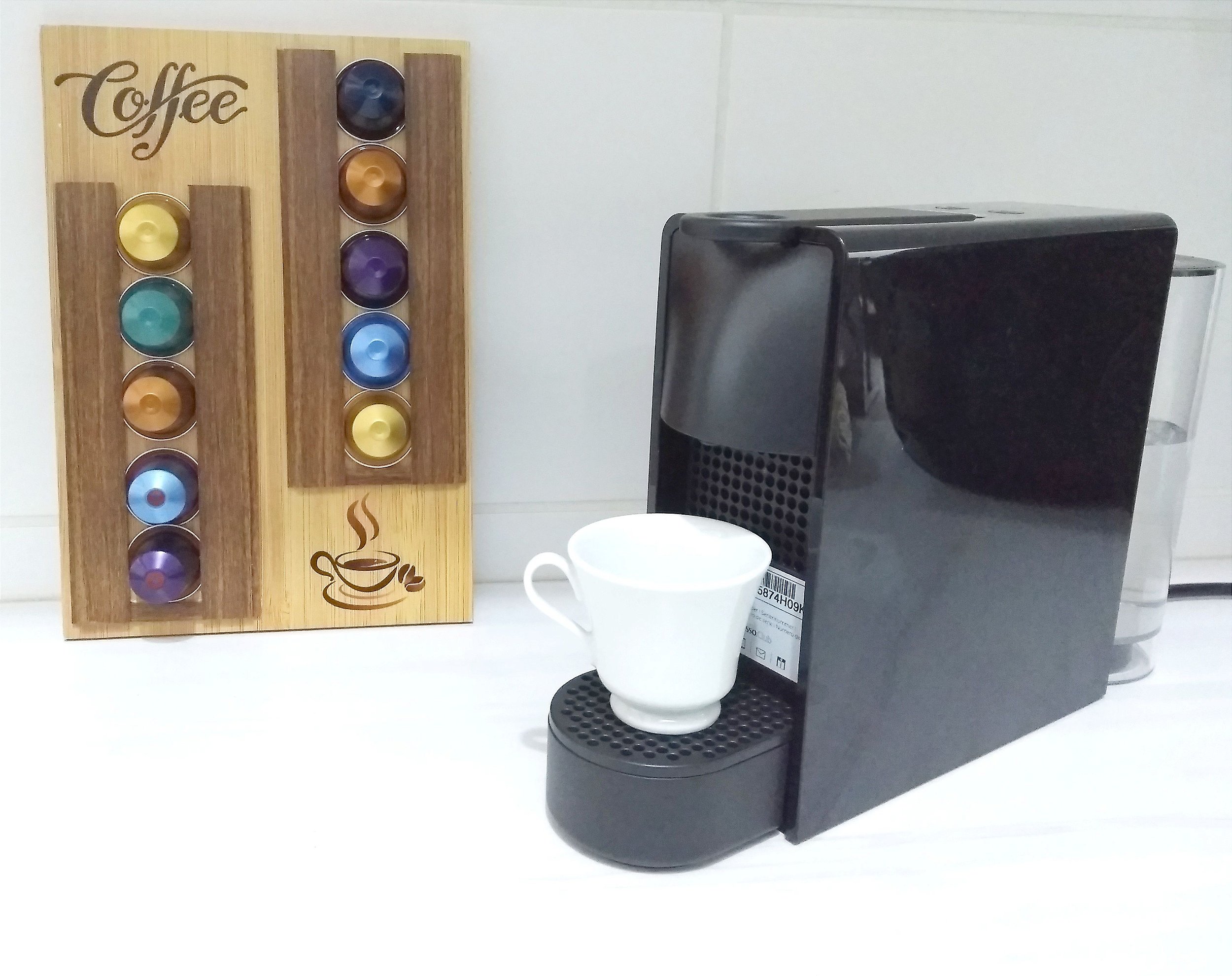 Utilização: Serve para armazenar de uma forma bem legal e também organizada, suas capsulas de café e chá. Com o sistema de canaleta, a cápsula encaixa perfeitamente no suporte onde a armazenagem é feita do tipo UEPS (o Último que Entra é o Primeiro que Sai).