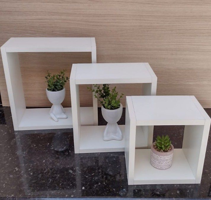Utilização: Estes encantos de nichos decorativos, ficam lindos em qualquer ambiente residencial e profissional. O kit com 3 tamanhos diferentes, permite você fazer diversas configurações bem legais da disposição entre eles.