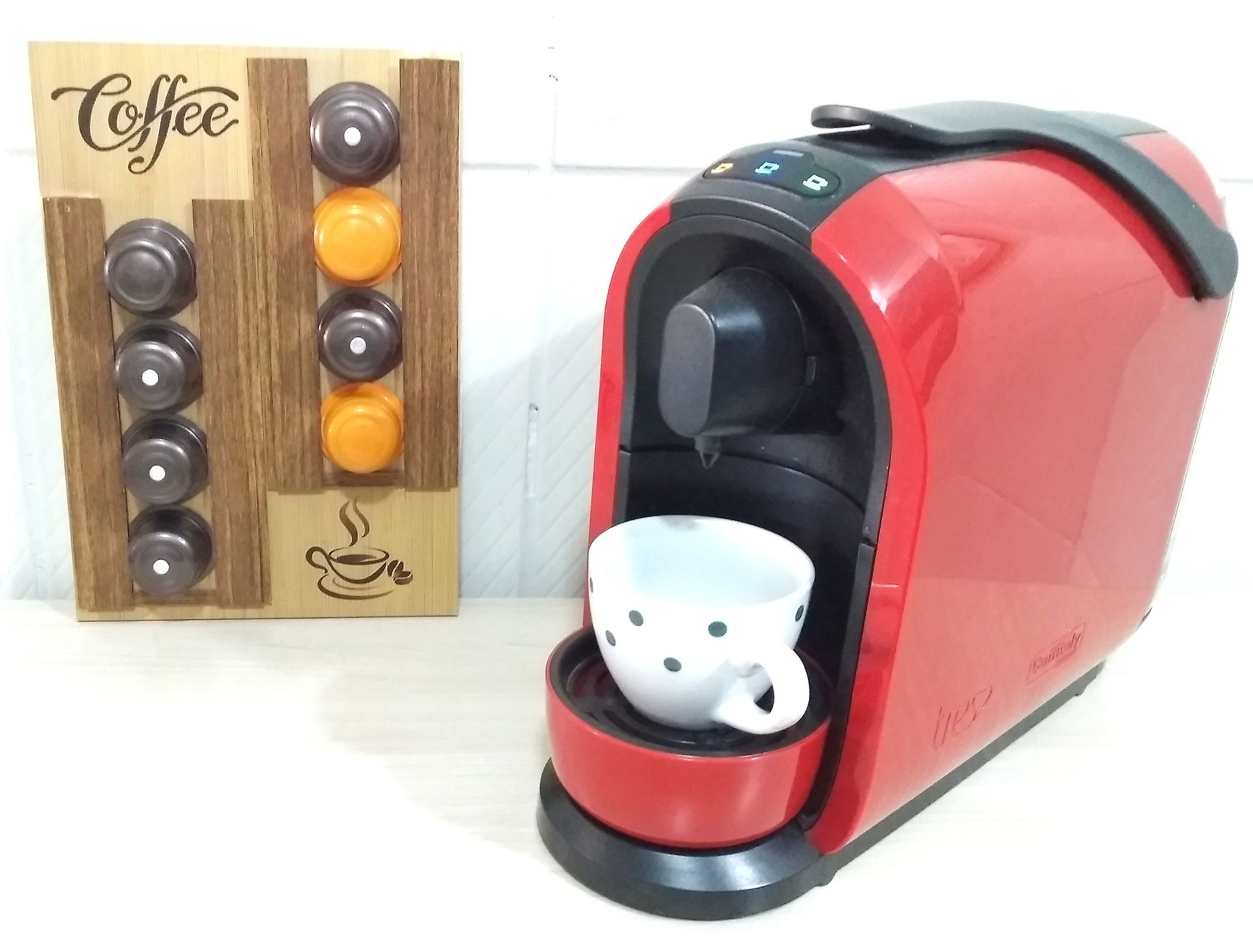 Utilização: Serve para armazenar de uma forma bem legal e também organizada, suas capsulas de café e chá. Com o sistema de canaleta, a cápsula encaixa perfeitamente no suporte onde a armazenagem é feita do tipo UEPS (o Último que Entra é o Primeiro que Sai).