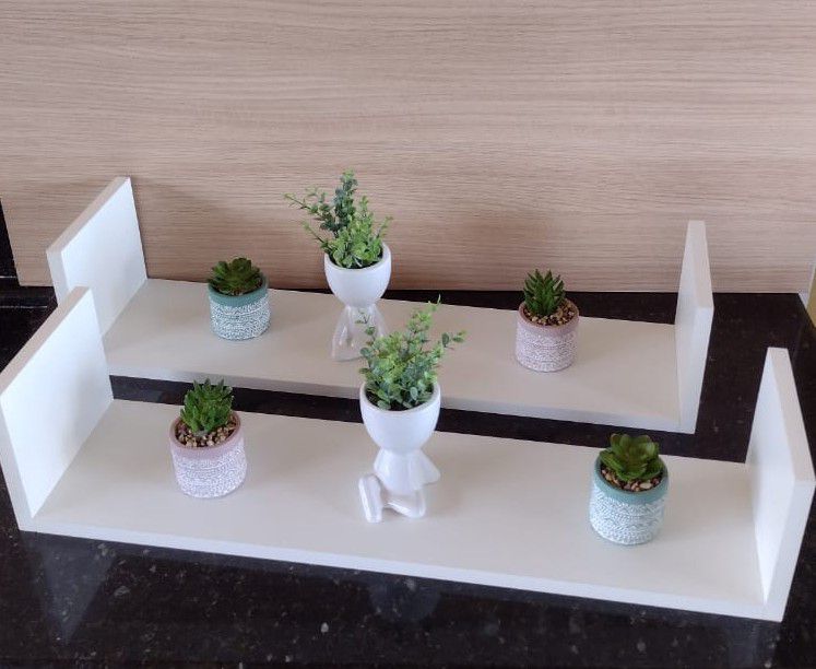KIT COM 02 PRATELEIRAS 66CM FORMATO "U" EM MDF